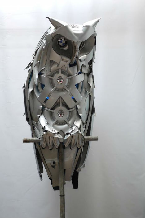 Затем, сыч обратил внимание на фигуру из металла, напоминающую скелет человека. Рядом с ним лежал череп, который оказался мотоциклетным шлемом.